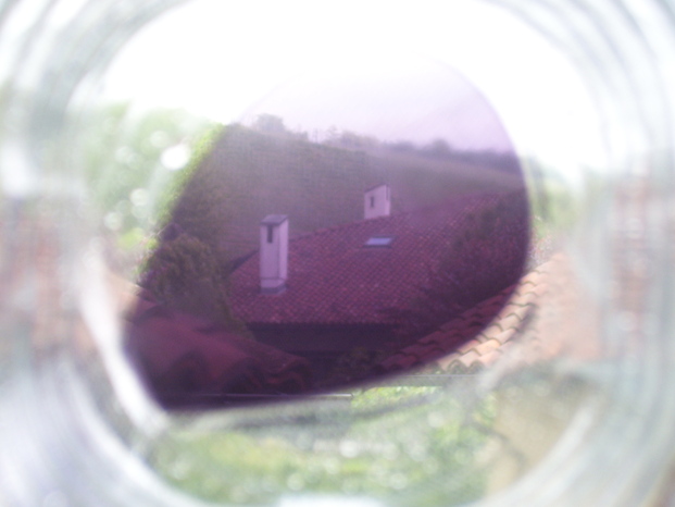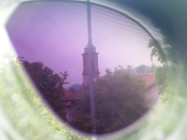 tutto ha inizio quando a pasquetta un mio amico ha rotto gli occhiali da sole...così ho pensato di recuperare le lenti per fare questa missione, solo che non riuscivo a realizzare come costruire un obbiettivo...dopo centinaia di interminabili secondi, dato il mio grosso sforzo, ero assetato e così mi sono sgolato una bottiglia d'acqua...e li mi si aprì una via piena di luce...era mia mamma che mi ha aperto le persiane...fatto sta che ho collegato subito bottiglia e lente, lente e bottiglia fino a creare un obbiettivo (da me chiamato BOTTILENTEGLIA)...dopo aver creato ho subito voluto testare e visto che i risultati mi sembravano abbastanza uuuuuuuuuhuhuhuuuuu (cioè buoni ma svarioni) ho deciso di andare in giro per piobesi a scattare foto a tetti e antenne!!! =)