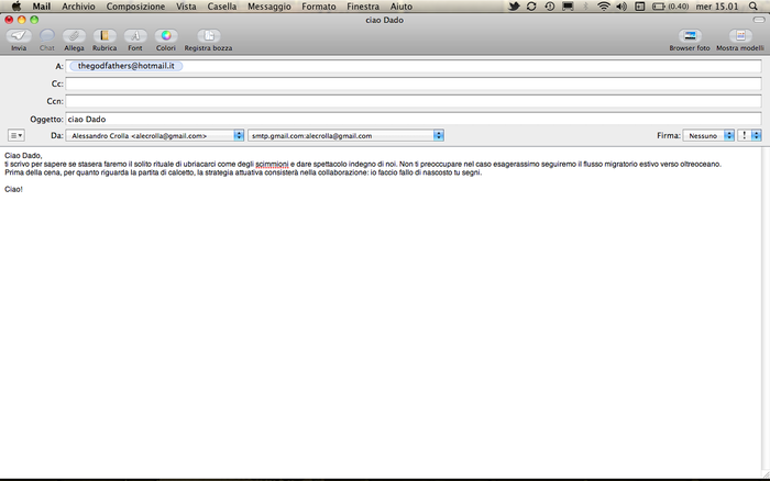 Scrivi una mail a un tuo amico che contenga le parole: rituale, flusso migratorio e strategia attuativa.