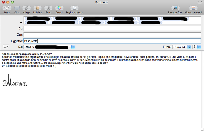 Qui sotto trovate il testo della mail che ho mandato: