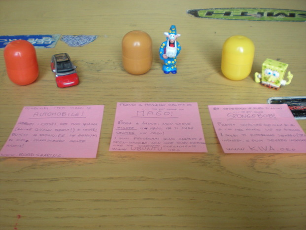Materiale base: 3 ovetti di 3 gradazioni diverse, 3 foglietti con la descrizione dei 3 siti, 3 sorpresine personalizzate per ogni sito!