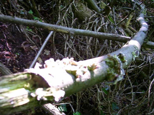 io e mauro ci siamo avventurati in un bosco vicino a corneliano d'alba alla ricerca di un fungo anche se questo non è proprio il periodo più conveniente...abbiamo iniziato le ricerche ma non riuscivamo a trovare niente...poi siamo tornati indietro e abbiamo preso un'altra via e dopo una faticosissima salita (visto che il terreno era veramente scivoloso e, giusto per non complicarci la vita, noi avevamo le scarpe lisce...) mauro vede dei funghi attaccati a dei rami...così io mi arrampico ulteriormente verso di lui per documentare il ritrovamento ed eccoli qua, tanti piccoli funghi cresciuti sulle spalle di poveri rami...vorrei anche dire che per fare la discesa abbiamo quasi sradicato un alberello e mauro si stava per piantare una culata epica!! io invece ho rischiato la vita più volte viste le mie scarse doti da scalatore, ma alla fine, nonostante " l'immerdamento "non generale, ma parziale direi, ci siamo divertitiiii!! :D :D