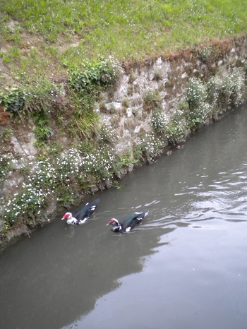 Le due anatre con gli anatroccoli dietro (che in realtà non si vedono bene)