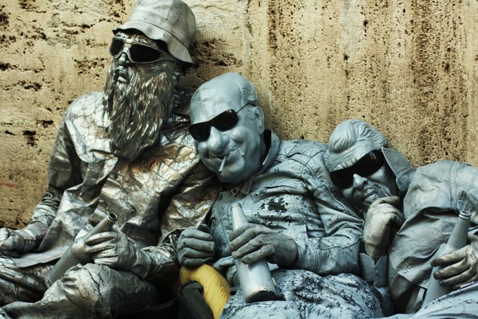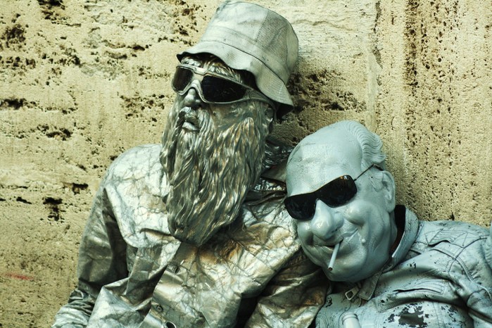 Quando giro per Milano, Roma o grandi città, i più folli che vedo sono loro, ligi tutti i giorni al loro dovere di statue viventi (non sempre solo statue, anche prestigiatori, alberi semi-moventi e intrattenitori urbani).