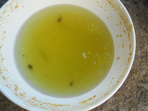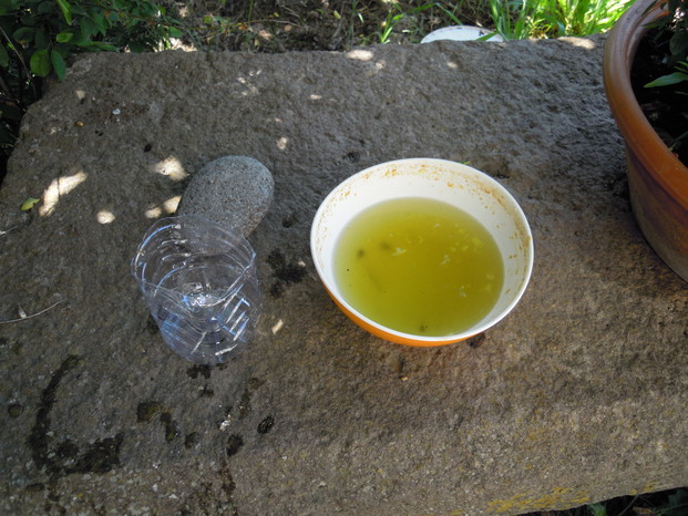 Come potete vedere nelle foto 1 e 2 era molto, molto sporco, quindi non potevo usare copi di alcun tipo... ho deciso quindi di usare due secchielli travasando l'uno nell'altro a bassa velocità, sottolineo bassa (ci ho messo troppo tempo, notate anche che da pomeriggio ha tramontato) vedevo quando i girini cambiavano secchio e con mezza bottiglia trasparente li prendevo e li mettevo nel recipiente [foto 3 e 4], man mano che pescavo l'acqua però la melma era sempre di più, allora ho dovuto usare la mezza bottiglia per cercarli meglio sfruttando la trasparenza della plastica... fino a quando non li ho pescati tutti (o almeno spero) [foto 5].