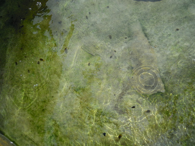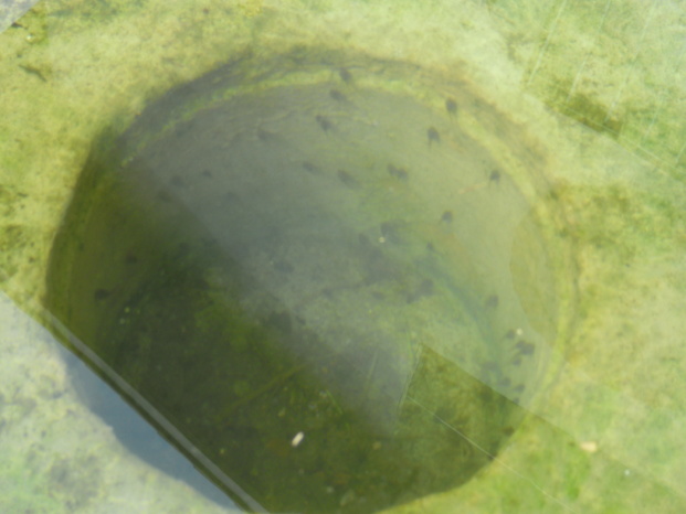 Una volta vuotato il laghetto e grattato un po' di alghe [foto 7], l'ho poi riempito e ho travasato i girini [foto 8 e 9] che si sono riambientati subito [foto 10 e 11].