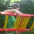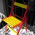 Installa una sedia dipinta a colori vivaci in un luogo pubblico con vista panoramica.