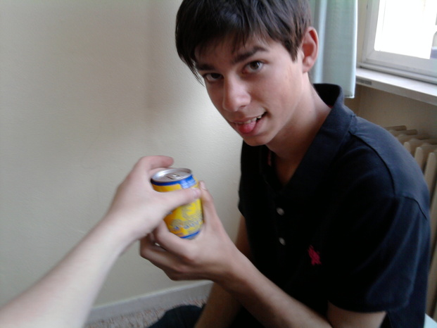 Oggi a scuola prima di uscire ho offerto una lattina di te a angel de la muerte, era felice di questo. Dovevate vedere come l'ha bevuta