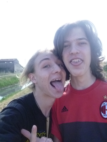 Il povero Piace viene lavato da Gabrock e Rockettaro con una bottiglietta d'acqua.