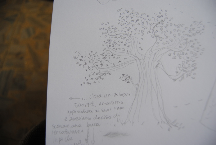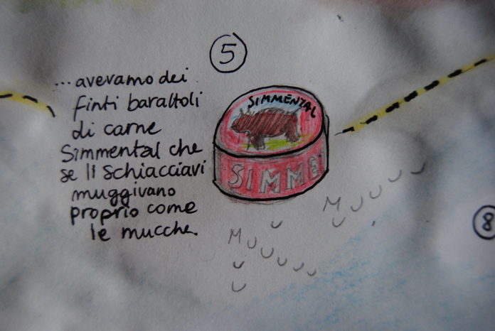 Per i disegni, ho deciso di ispirarmi a quelli di Quentin Blake, perchè da piccola leggevo molti libri che vedevano lui come illustratore. Riguardo ai colori, ho scelto i pastelli acquerellabili perchè mi ricordavano la scuola materna.