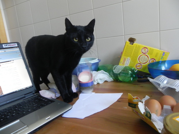 Foto random di Muffin disteso accanto ai dolcetti XD