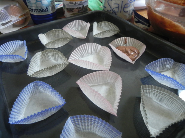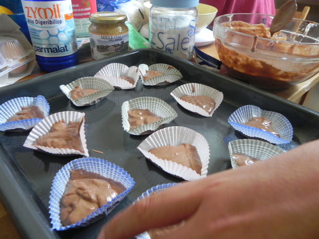 Dovevano essere muffin in realtà... ma noi non sappiamo cucinare, quindi sono cupcakes. Selavì. Dopo aver cucinato e incasinato la cucina per bene, io e il mio fratellino Dario abbiamo atteso con pazienza la cavia FLA per assaggiare i nostri cupcakes triangolari (come se non li avessimo già assaggiati noi prima... ma shhh) e alla fine (come sempre in ritardo) è arrivato con la sua chioma inequivocabilmente color pigna e li ha assaggiati. "Non sanno di niente", dichiara, dopo varie occhiate scettiche all'indefinibile dolcetto. Eh vabè, non siamo cuochi, noi u.ù