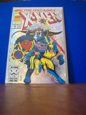 Numero 300 di Uncanny X-Men, con copertina olografica, autografato dal mostro sacro dei fumetti John Romita Jr. (in alto a destra, sulla "n" di "men")