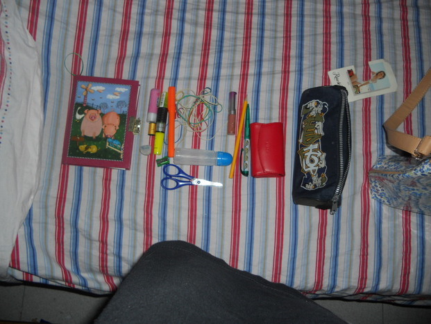 Armamento: 1) Diario con le pagine che si staccano, ottimo per fare missioni dove bisogna dare fogli in giro :D 2) Burrocacao, per labbra ben idratate 3) Filo da cucito 4) Gomma da cancellare 5) Evidenziatore giallo e l'altro arancione 6) Forbici 7) Temperino 8) Colla figa 9) Elastici colorati 10)Lucidalabrador 11) Matita 12) Penna dall'Olanda 13) Astuccio Hip Hop con pennarelli e pastelli 14) Pezzo della borsa Carpisa che conterrà il tutto *Simbolo di Batman*) Visto che non sapevo che fare, ho taggato anche la modella del pezzo di carta :D