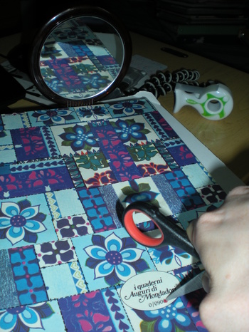 Fase 1: allineare lo specchietto alla parte interna del raccoglitore floreale, scotchare il tutto per renderlo fisso e sicuro.