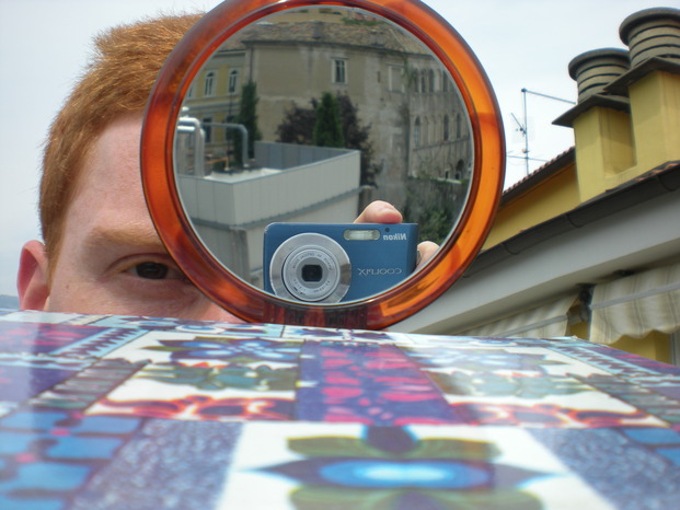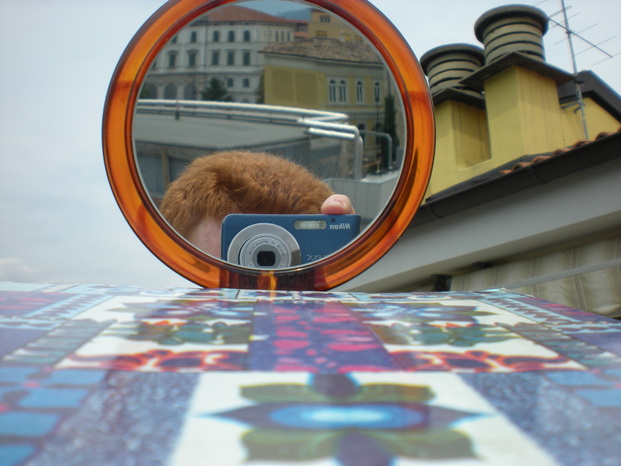 Già alla seconda foto riesco a realizzare l'idea che avevo di "doppia foto riflessa": tetti davanti, tetti dietro.