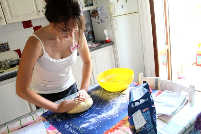 Dopodiché le ho spiegato come fare la pasta, ahahah non sapeva impastare e mi collassavo X'D [ le avevo chiesto di farmi una foto mentre le facevo vedere come si fa, ma è come terrorizzata dall'idea che la Reflex possa sfuggirle di mano, cadere a terra e io possa ucciderla ._. ] mha.