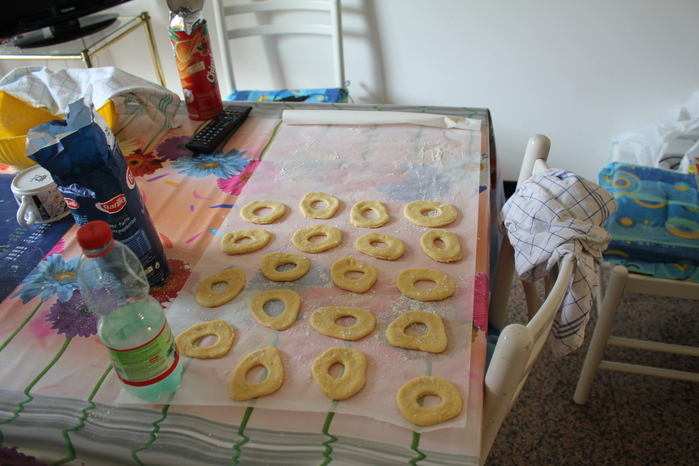 dopo un paio d'orette di lievitazione, la pasta era bella e pronta per le ciambelline:D