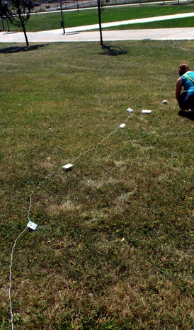 Stendi un filo all’aperto che conduca chi lo segue ad un messaggio. Completa a piacere il messaggio: "BENVENUTO AMANTE DEL FILO. QUESTO FILO ___________". Accompagna, se vuoi, il messaggio con un piccolo regalo.