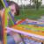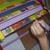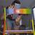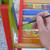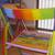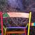 Installa una sedia dipinta a colori vivaci in un luogo pubblico con vista panoramica.