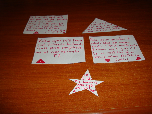 Realizza almeno 5 messaggi "simili" a quelli che trovi nei Baci Perugina. Colloca i tuoi messaggi in luoghi pubblici così che i passanti possano trovarli.