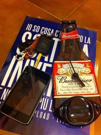 - l'orologio non che bottiglia di Budweiser perché mi piace la birra e questa marca è diventata per un paio di ottimi motivi (ricordi associati ed il piacere nel berla) la mia preferita, e lo è al punto che la mia amica mi ha regalato appunto questo orologio.