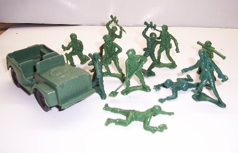Indubbiamente il giocattolo piu importante della mia infanzia (persino piu importante dell'elefantino chicco con le rotelle XD ) sono stati i soldatini in plastica. Passavo ore e ore a schierarli e a scatenare guerre mondiali...mi mancano quei tempi :')