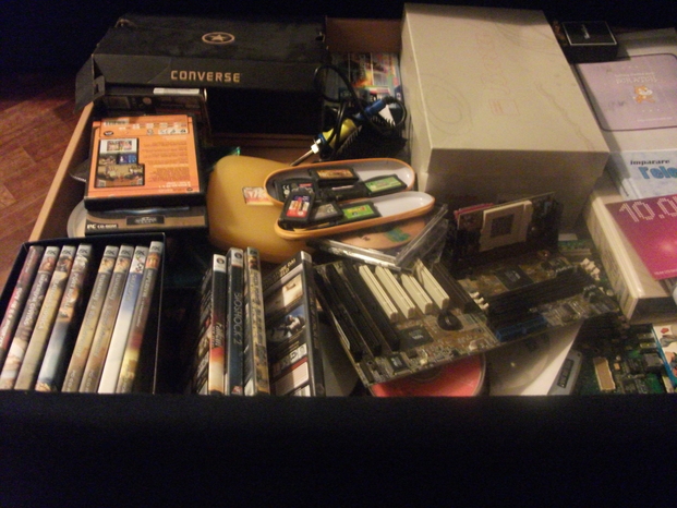 [COSA HO DI SPECIALE] Il mio cassetto geek. Contiene: Videogiochi (PC, GBA, NDS, PS1, PS2) + Circuiti + CD vari di software + Kit per creare cirduiti + Manuali vari di programmazione + Cavi di ogni tipo per ogni evenienza... in pratica è il mio mondo concentrato in un cassetto