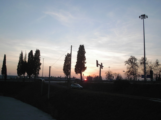 Sulla destra, sotto le piante, correva la Susegana-Montebelluna...
