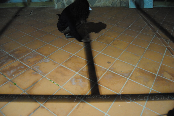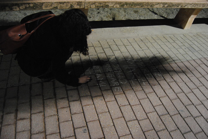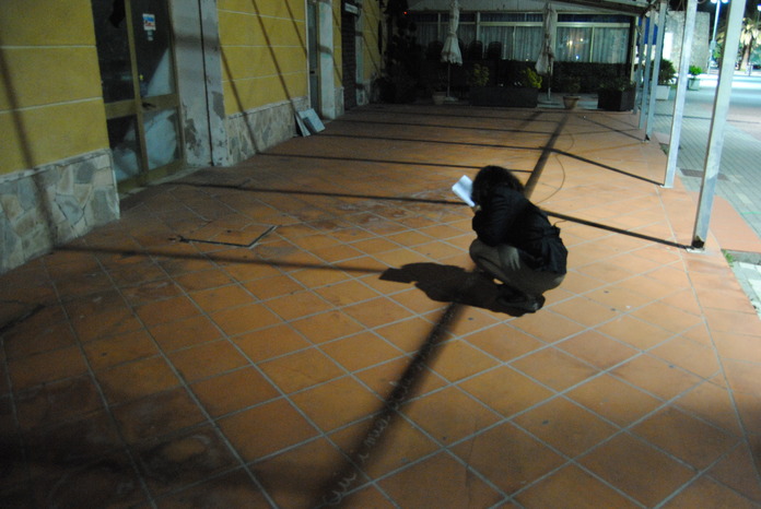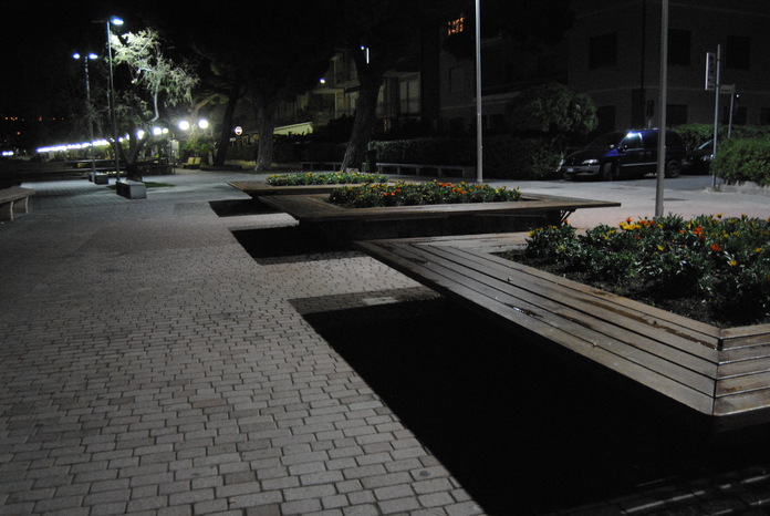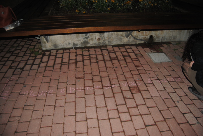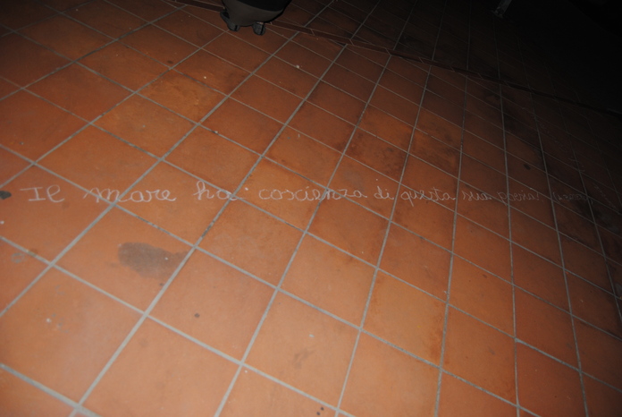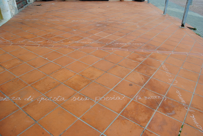 Così mi è venuta quest'idea. Chi l'ha detto che i contorni delle ombre debbano essere semplici righe? Se fossero, per esempio, delle frasi? E visto che siamo al mare, perchè non delle frasi sul mare? Ed eccomi una notte ad arricchire il lungomare di aforismi.