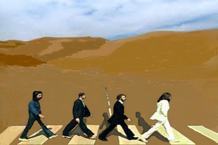 con questa copertina modificata dei Beatles ho voluto dare l'idea che i veri musicisti amanti della musica farebberò di tutto per i fans anche attraversare un deserto