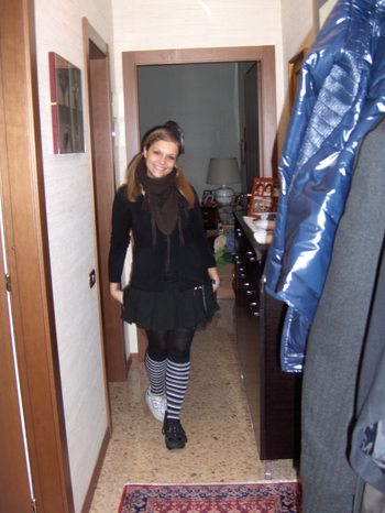 avrei voluto mettere un autoreggente nero e uno bianco, da abbinare rispettivamente alla scarpa nera e a quella bianca, peccato che le autoreggenti bianche siano difficilissime da trovare.