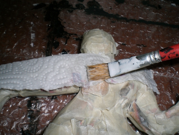 finita questa fase con dello scottex e del vinavil ho dato una forma piu umana alla scultura