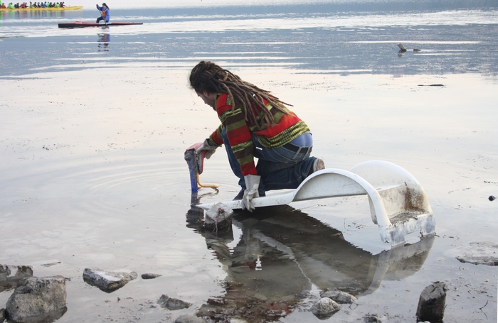 Fai una scultura su una spiaggia usando solo materiali trovati nella spiaggia stessa.