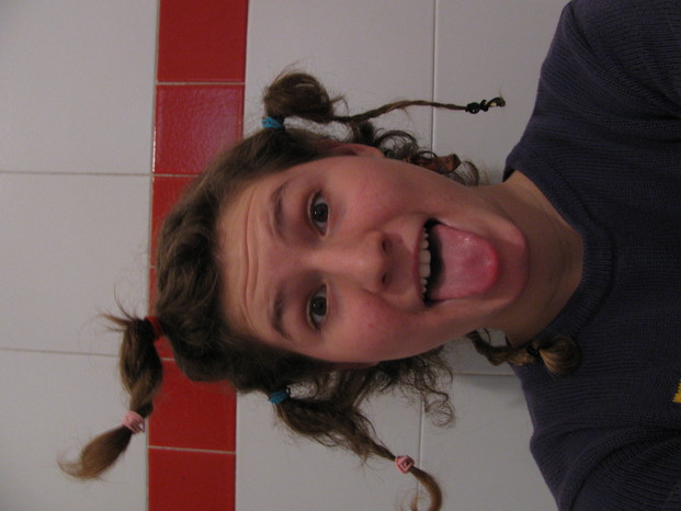 Tavolata della domenica con la famiglia riunita. Mia sorella decide di iniziare lì sul posto uno stage da parrucchiera e usa i nostri capelli per impiegare tutta la sua creatività. Potete vedere i risultati su di me!