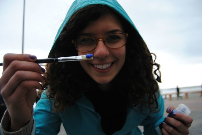 Procurati una tela bianca e dei colori. Recati in un luogo pubblico molto frequentato, crea un’opera d’arte.