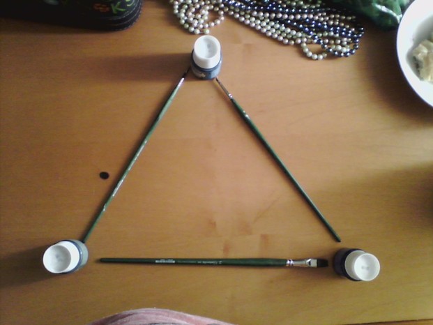 La seconda rielaborazione è fatta con 3 dei miei pennelli in setola sintetica dalla punta piatta per acrilico e tempera e tre tubetti di colore per vetri. Ogni tanto mi diletto che dipingere qualcosa sulle finestre di camera mia e visto che l'arte fa parte della mia vita ho deciso di inserirla anche in questa missione.
