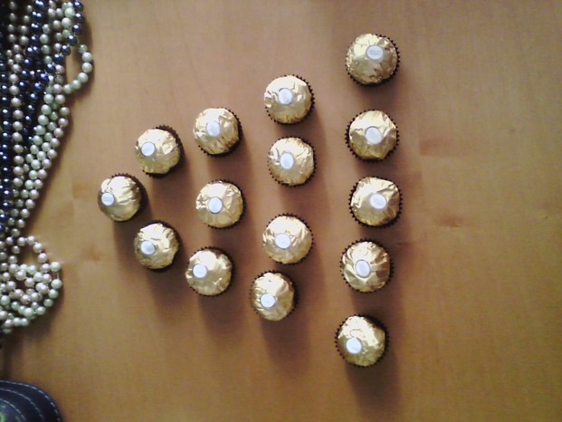 La terza rielaborazione è una piramidina di Ferrero R. ne sono molto molto golosa, mi piacciono moltissimo e ne ho due scatole a casa, perciò ho pensato.. che cosa posso usare di dolce se non i miei amatissimi cioccolatini per creare un simbolo alternativo e molto molto Kawaii? >///< spero che sia apprezzato.
