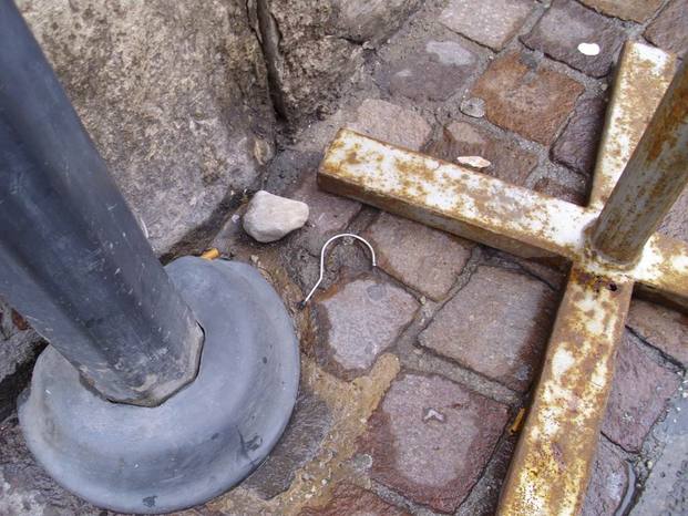 Primo passo: legare tacco e campanello col filo di ferro e una pinza