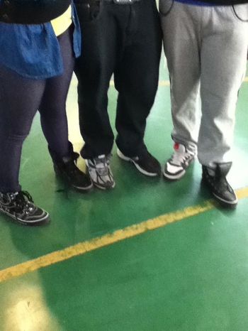 Sabato la mia ragazza ebbe l'idea di svolgere questa esecuzione in modo differente dalle altre, o meglio organizzando un evento che coinvolgesse tutta la scuola. Purtroppo la maggior parte dei ragazzi reputavano tale cosa ridicola e dannosa per la loro dignità (?). Fortunatamente però una trentina di ragazzi hanno aderito e ciò è stato comunque molto figo. La giornata è iniziata come al solito, con l'unica differenza che la gente in strada mi guardava in modo stranito, ma vabbè c'era da aspettarselo dopotutto. Arrivato a scuola non sono mancati i commenti ironici dei miei amici che però dopo un po' si sono convinti a scambiarsi le scarpe con i compagni per cazzeggiare un po'. Durante l'ora di educazione fisica invece io e un mio amico siamo riusciti a convincere ragazzi di altre classi a fare lo stesso e questo ci ha fatto sentire davvero realizzati, cioè era bello vedere gente che girasse per i corridoi con scarpe di colori differenti. Ovviamente c'era anche chi lo faceva per mettersi in mostra, ma alla fine la cosa è stato comunque divertente. Tutto sommato è stata una mattinata figa, una cosa come una scarpa diversa può rendere una monotona giornata scolastica differente dal solito, e magari può riuscire anche a rallegrarla un po' se non si è davvero in vena di divertimento, insomma è un'esperienza da rifare ;)