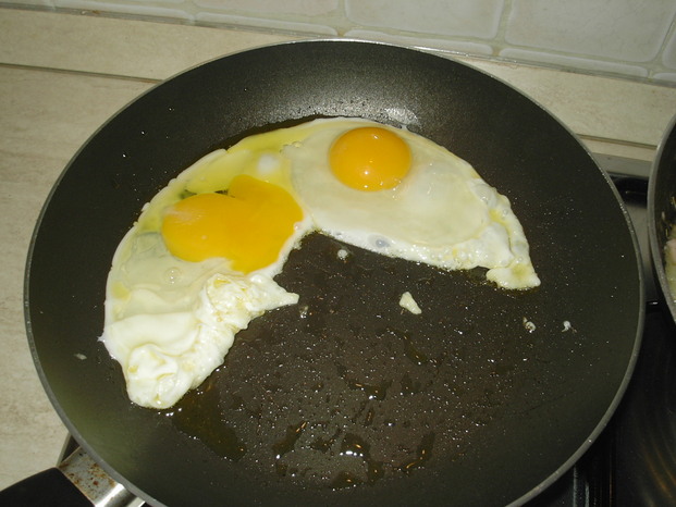 in una pentola a parte, preparare le uova al tegamino (sono pronte in circa 3 minuti, quindi preparatele quando le patate sono quasi pronte)