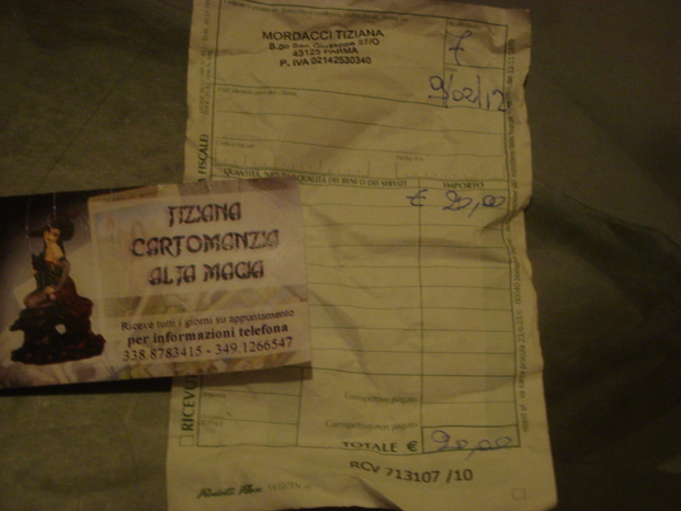L'incontro con la cartomante, la Sig.ra Tiziana è stato il più strano ma anche quello più significativo! La cartomante era una cartomante seria e non ha voluto essere ripresa neanche al di fuori dello studio.. Ci tengo a precisare che dopo avermi letto le carte e aver risposto alla mia domanda non ha chiesto alcun compenso, mi ha detto che se volevo potevo fare un'offerta e mi ha rilasciato la regolare ricevuta!