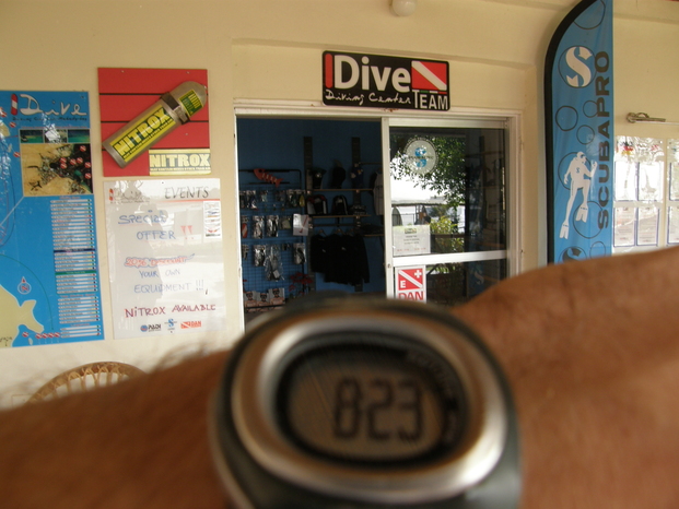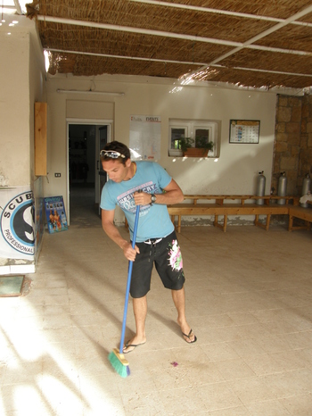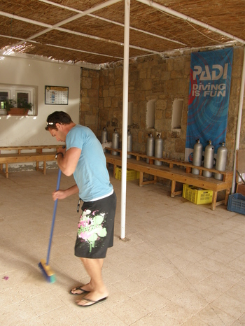 Ecco dove starò tutto il giorno a tenere compagnia a Davina, l'istruttrice e commessa qui al Diving Center...