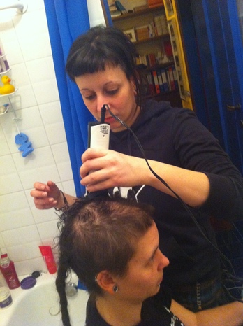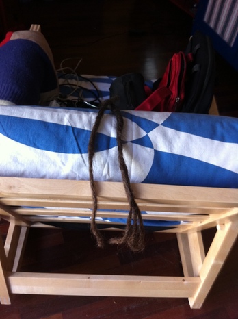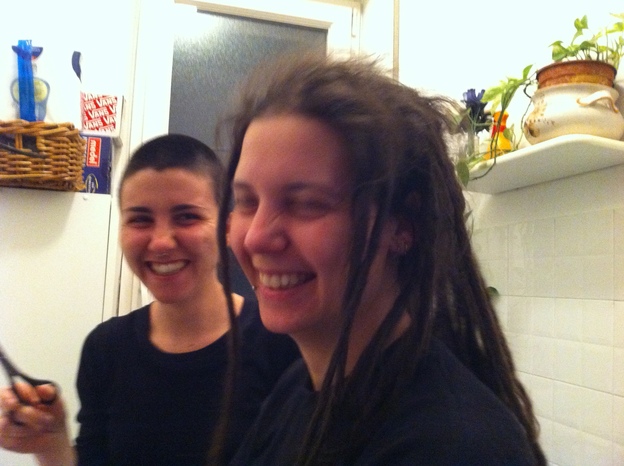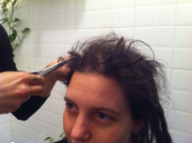 ...Avevo in testa circa 35 dread da 4 anni e mezzo (nati piccini, erano ormai taaaanto lunghi) ma prima o poi a tutto bisogna dare un taglio :-)
