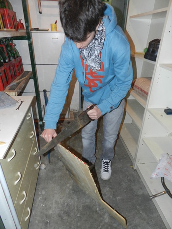 2) Muniti di sega, abbiamo preso le misure e tagliato tutti i pezzi di legno che ci servivano per la realizzazione della casetta/mangiatoia