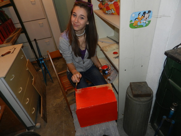 3) Abbiamo incollato le parti di legno (con molta, molta, molta, molta, mooooooooolllllllltttttttaaaaaaaa pazienza) e abbiamo dipinto le pareti