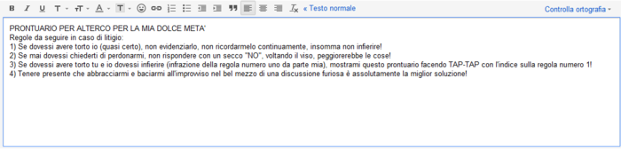 3) Se dovessi avere torto tu e io dovessi infierire (infrazione della regola numero uno da parte mia), mostrami questo prontuario facendo TAP-TAP con l'indice sulla regola numero 1!