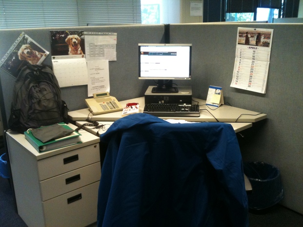 La foto è stata scattata poco prima dell'inizio del turno lasciando tutte le mie masserizie sopra la scrivania.