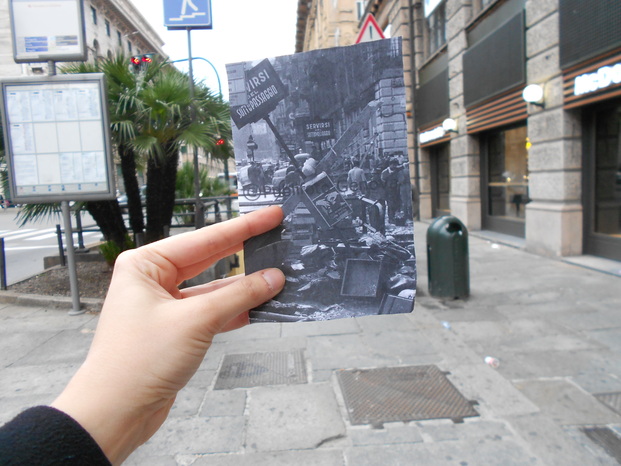 Scegli una vecchia foto, recati nel punto esatto in cui è stata scattata, con una mano sovrapponila alla realtà che hai davanti in modo che coincida con quanto è intorno. Scatta una nuova foto.
