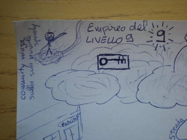 Iniziamo dall'angolo in alto a sinistra. Community ninja sulla sua nuvola speedy accanto all'Empireo del LIVELLO 9.
