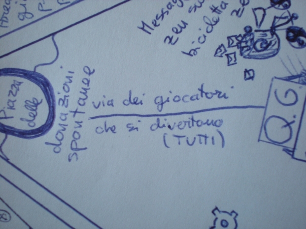 La prima piantina del centro città e un abbozzo di periferia (i bassifondi, il mare, le montagne, il bosco...)